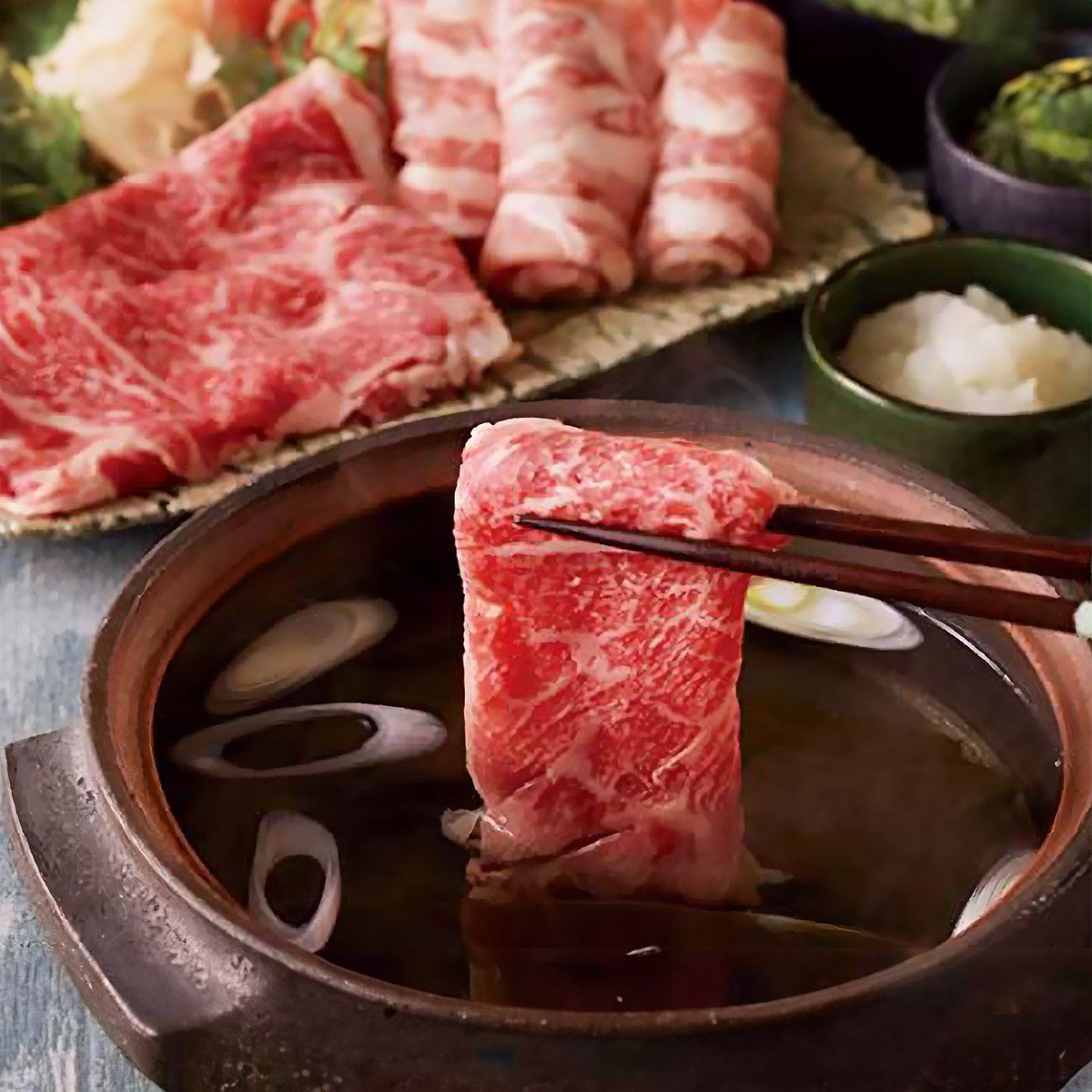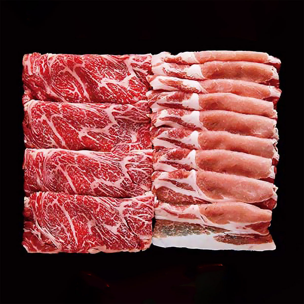 味わい深く口あたりの良い蔵王牛と、山形が誇るブランド三元豚、日本SPF豚協会認定農場で育てられたやまがた雪豚のしゃぶしゃぶです。