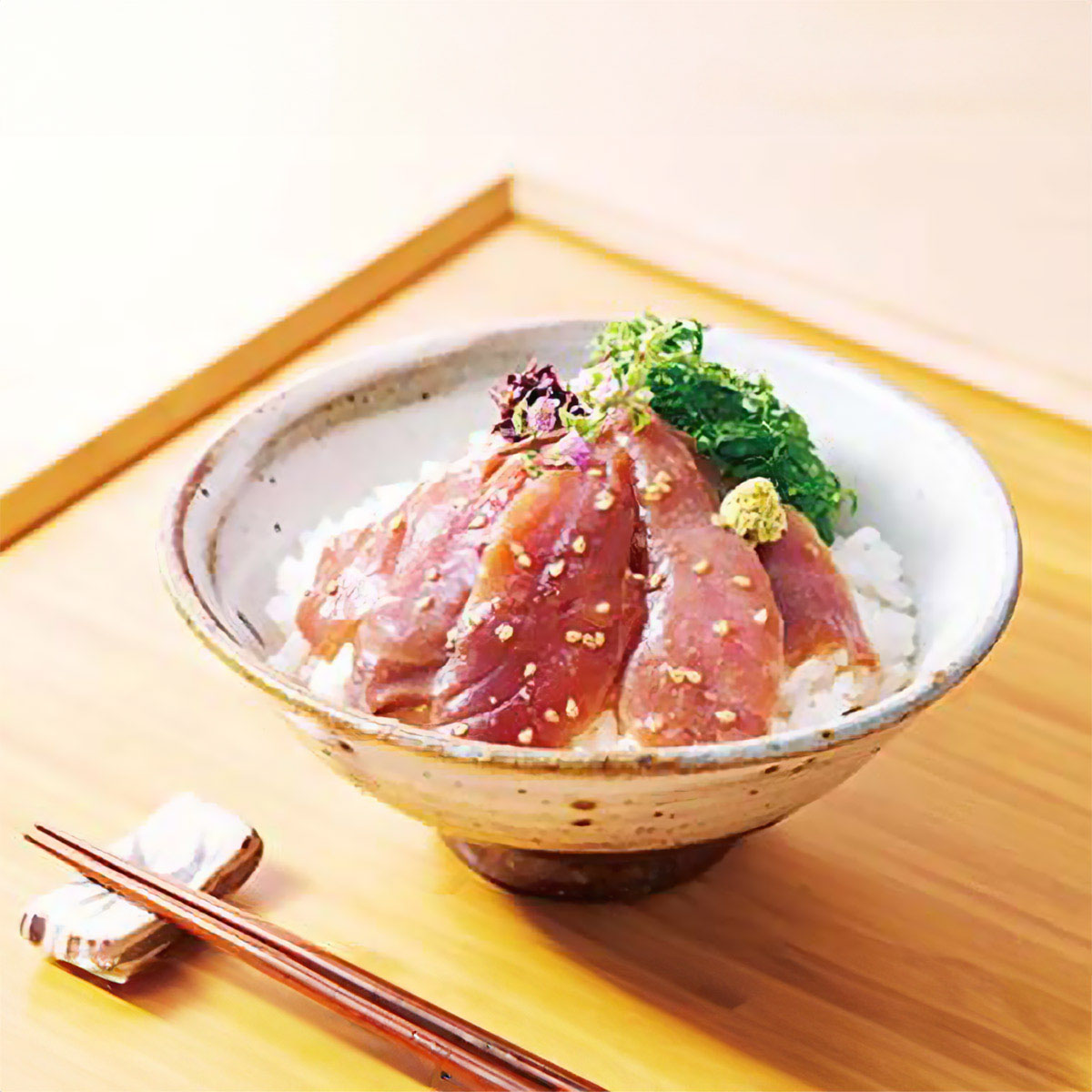 近畿大学水産研究所が世界ではじめて完全養殖に成功したクロマグロ、近大マグロと相性の良い和歌山県の湯浅醤油を配合し深い味わいの漬け丼に仕上げました。