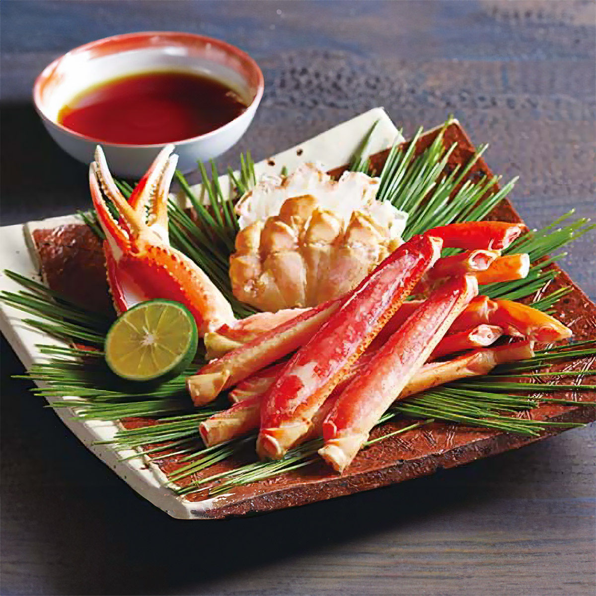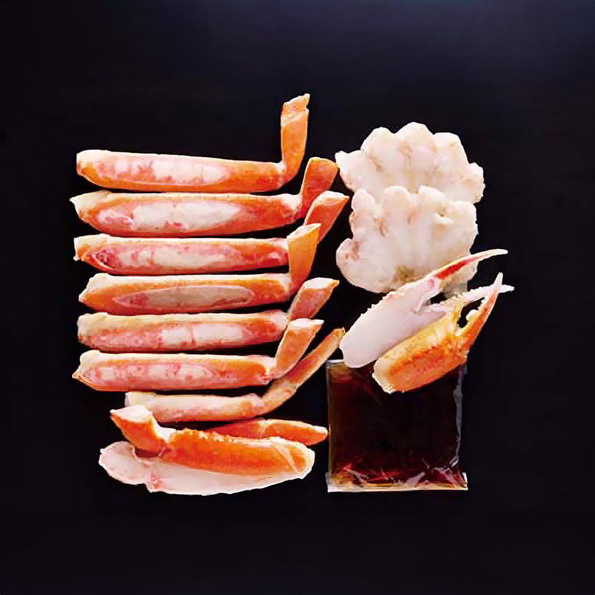 ずわいがにの脚肉を食べやすいようにカットしてお届けします。お好みで三杯酢をつけてお召し上がりください。