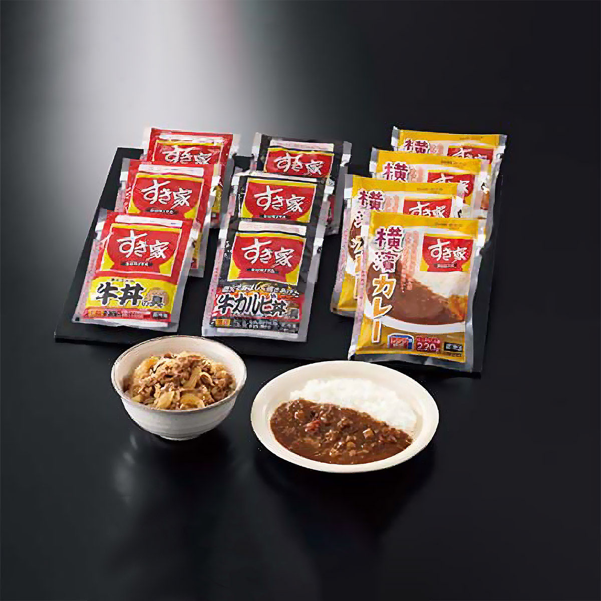 ●内容:すき家 牛丼の具135g×3食、牛カルビ丼の具120g×3食、横濱カレー220g×4食●商品に含まれるアレルギー特定原材料8品目:乳成分、小麦●アルコール使用:あり●賞味期限:冷凍365日※パッケージが変更になる場合がございます。※お届け日、お届け時間のご指定は承れません。※ご注文からお届けまで10日前後いただいております。>>全国うまいもの巡り 商品一覧