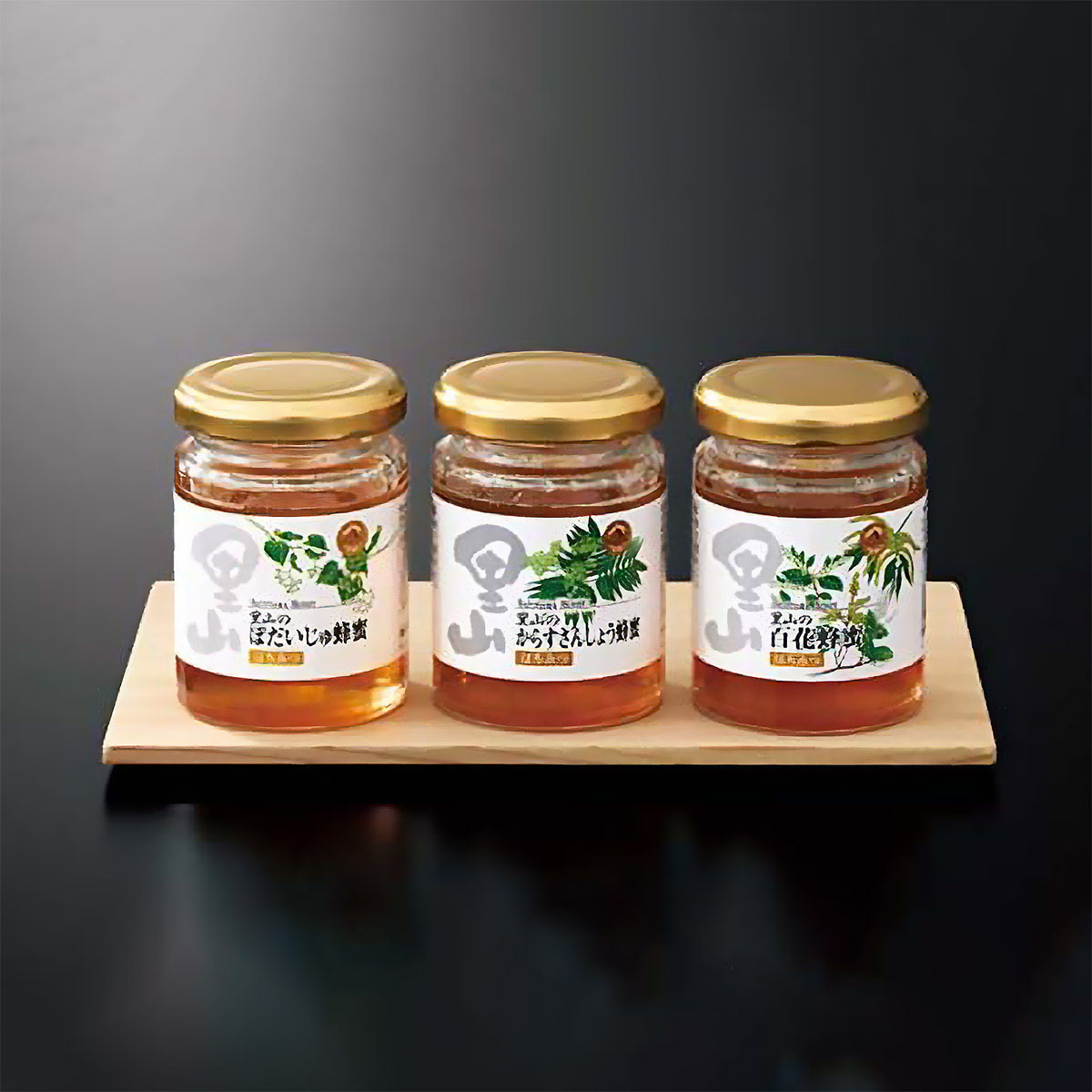 日本各地の樹木や野の花から採れた百花蜂蜜や華やかなぼだいじゅ蜂蜜、すっきりとしたからすさんしょう蜂蜜のセットです。稀少な国産蜂蜜をお楽しみください。