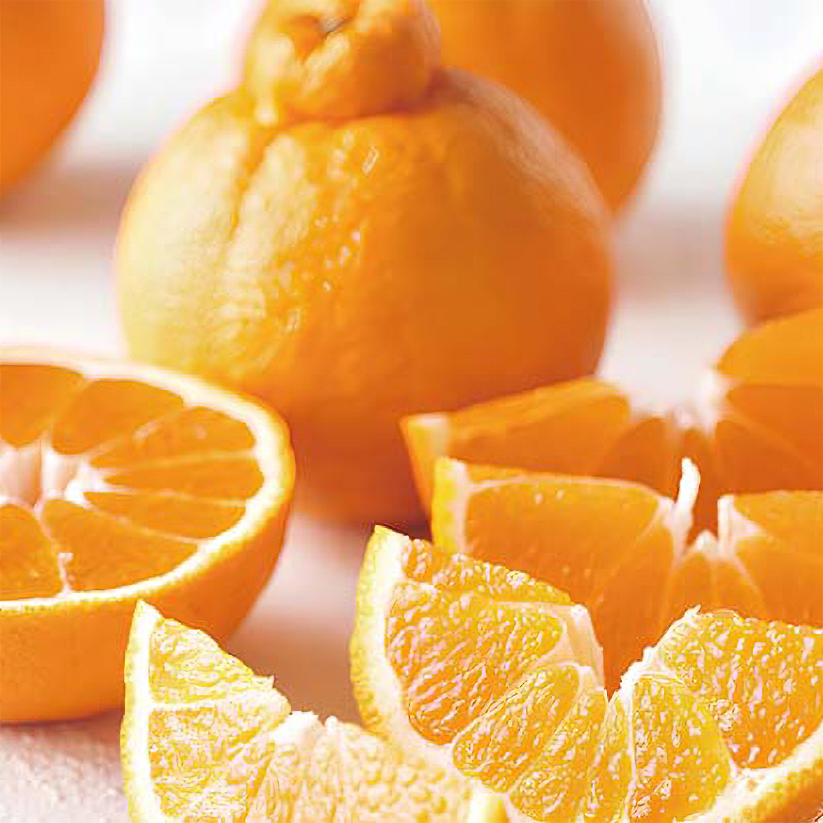 皮が簡単に剥けて爽やかな香りが広がり、内側の薄皮(袋)もそのまま食べることができ、広がる甘みと、まろやかな酸味が特徴です。※画像はイメージです。