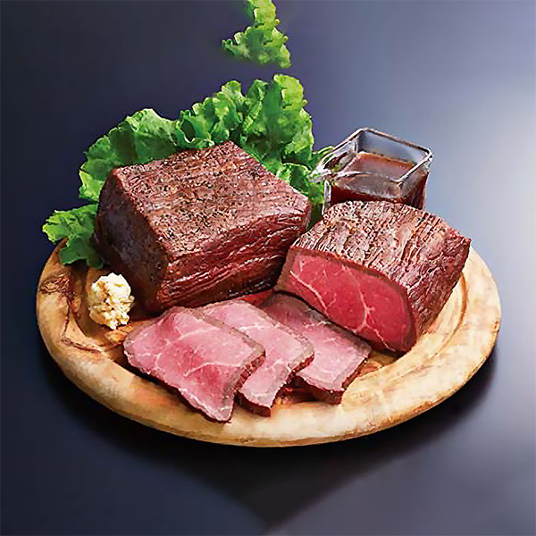 国産牛のモモ肉をシンプルな味付けで肉の旨味を引き出した、しっとりとした食感とジューシーな味わいのローストビーフです。