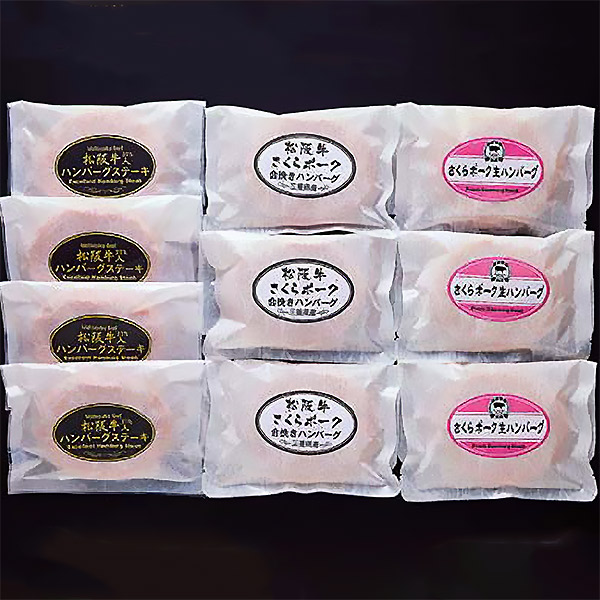●内容:松阪牛入(31%使用)生ハンバーグ120g×4個、松阪牛・さくらポーク生ハンバーグ120g×3個、さくらポーク生ハンバーグ120g×3個●箱サイズ:29×22.3×8cm●商品に含まれるアレルギー特定原材料8品目:乳成分、小麦●アルコール使用:なし●賞味期限:冷凍150日※お届け日、お届け時間のご指定は承れません。※ご注文からお届けまで10日前後いただいております。>>全国うまいもの巡り 商品一覧
