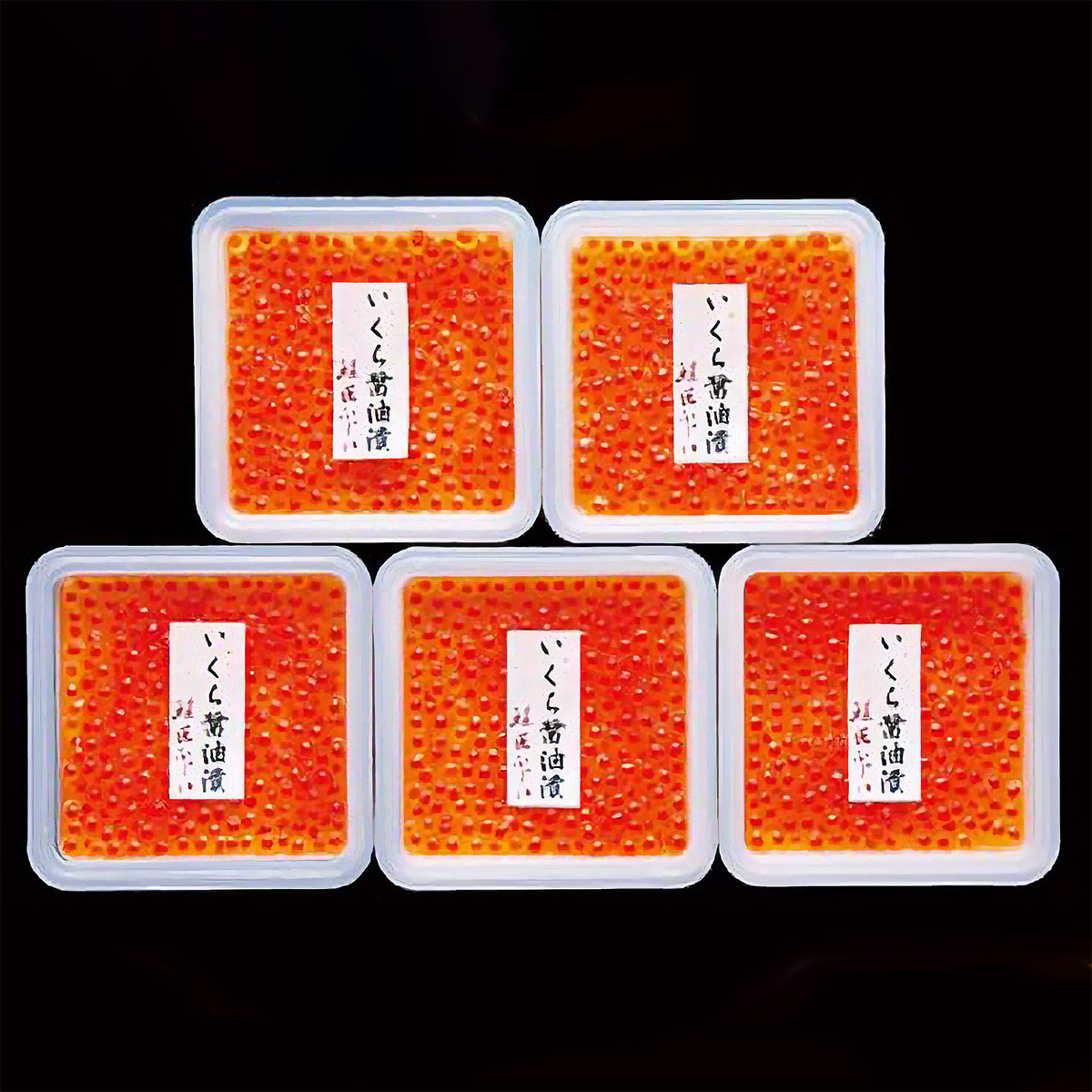 北海道根室近海などで獲れる秋鮭の卵を使用しました。程よく熟した卵を選び、甘口醤油仕立てのたれにじっくりと漬け込んだいくら醤油漬です。