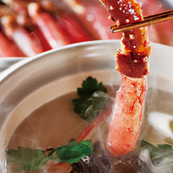 食べ応えのある「たらばがに」と繊細な旨みの「ずわいがに」の美味しさをしゃぶしゃぶで、食べ比べもお楽しみください。