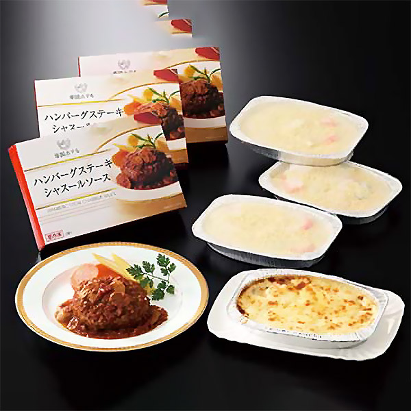 ●内容:ハンバーグステーキシャスールソース145g、エビのマカロニグラタン220g 各3個●商品に含まれるアレルギー特定原材料8品目:小麦、卵、乳成分、えび●アルコール使用:あり●賞味期限:製造後冷凍1年※お届け日、お届け時間のご指定は承れません。※ご注文からお届けまで10日前後いただいております。>>全国うまいもの巡り 商品一覧