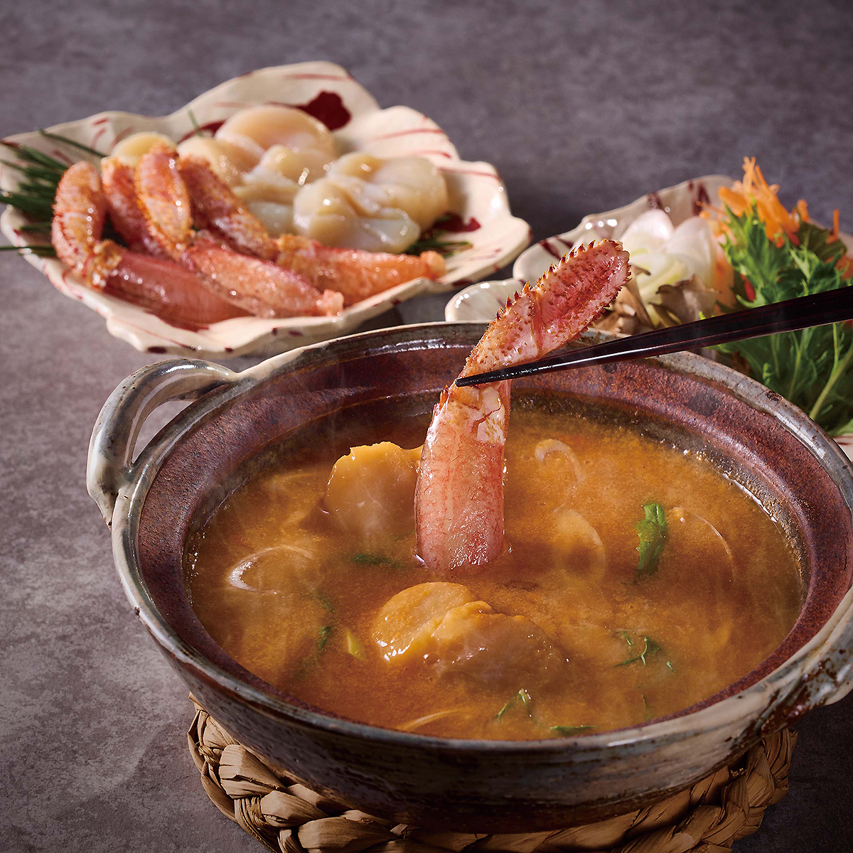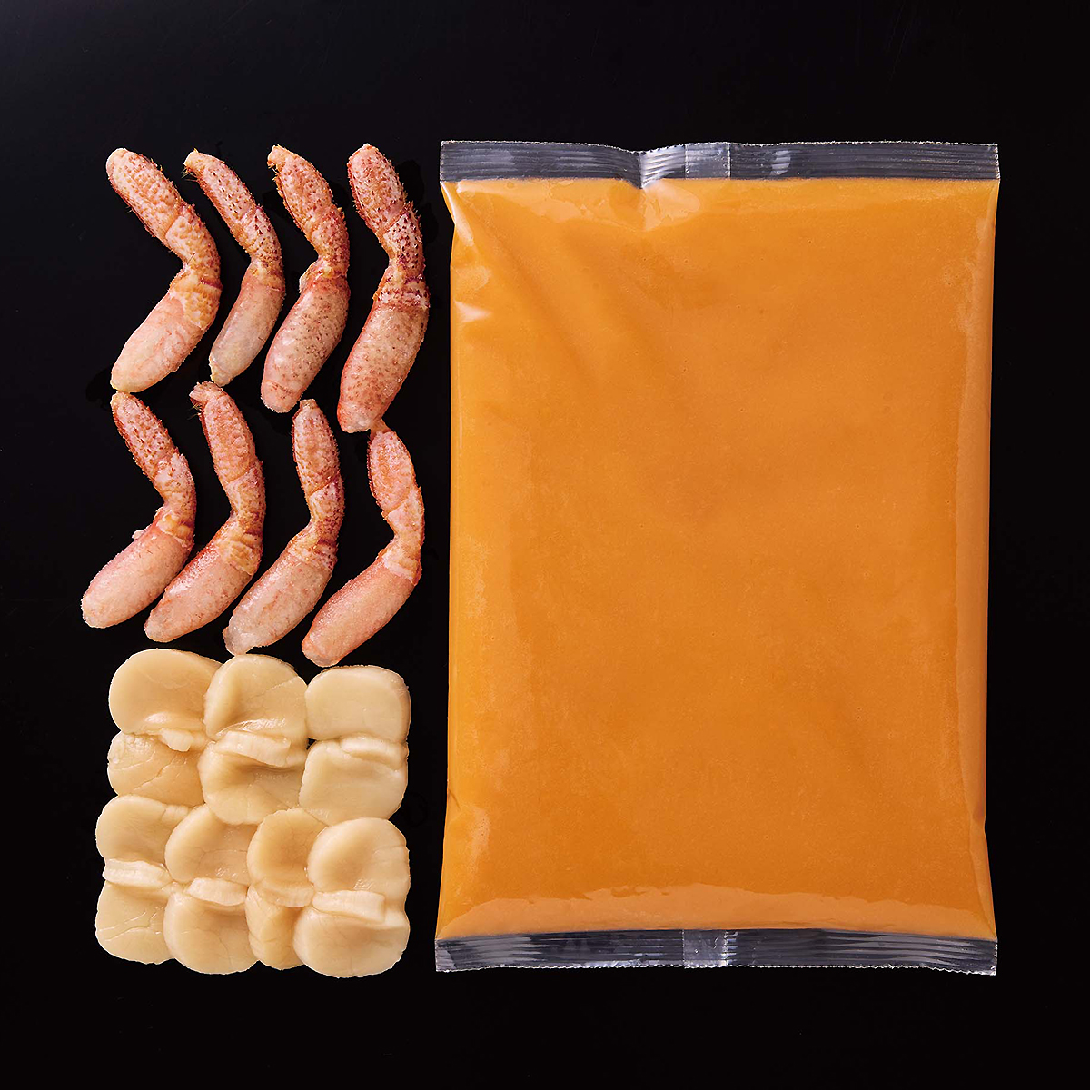 北海道産の雲丹を使用した、雲丹本来の濃厚な甘みとうま味が楽しめる雲丹スープで北海道産の「毛蟹脚」と「帆立貝柱」をお召し上がりいただくしゃぶしゃぶセットです。お好みのお野菜と一緒に、濃厚な雲丹スープと絡み合う海鮮素材のうま味をお楽しみください。〆は素材のうま味が溶け込んだ雲丹スープを雑炊にする事で、濃厚な雲丹スープを余すこと無くお楽しみいただけます。※画像はイメージです。