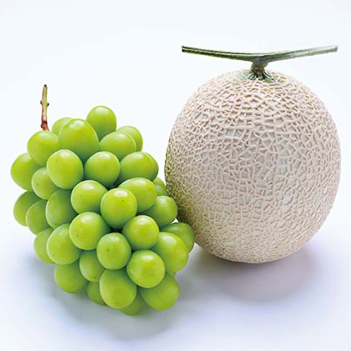 ●内容:アールスメロン×1玉(1.2kg)〈静岡県産、高知県産、熊本県産〉 、シャインマスカット×1房(500g)〈山梨県産、長野県産〉