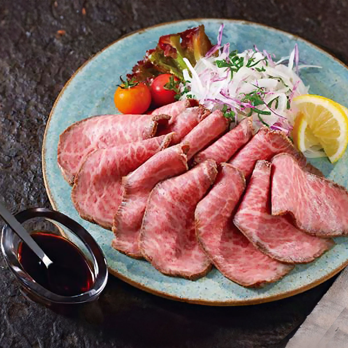 人気を集める老舗「肉料理 うし源」が確かな目で素材を選び、余計なものを加えずに仕上げました。とびきりの旨味が広がるローストビーフを食べやすくスライスしてお届けします。