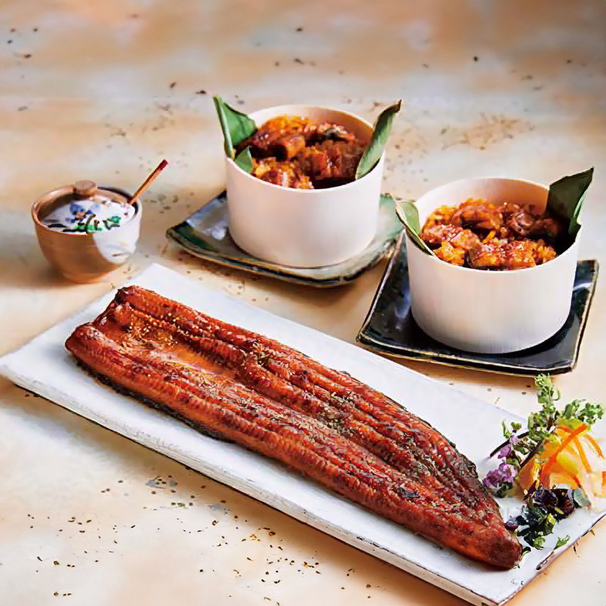 うなぎ問屋がこだわりのたれで風味豊かに焼きあげたうなぎの蒲焼と、ふわっともちっと丁寧に蒸しあげた上品なうなぎおこわです。