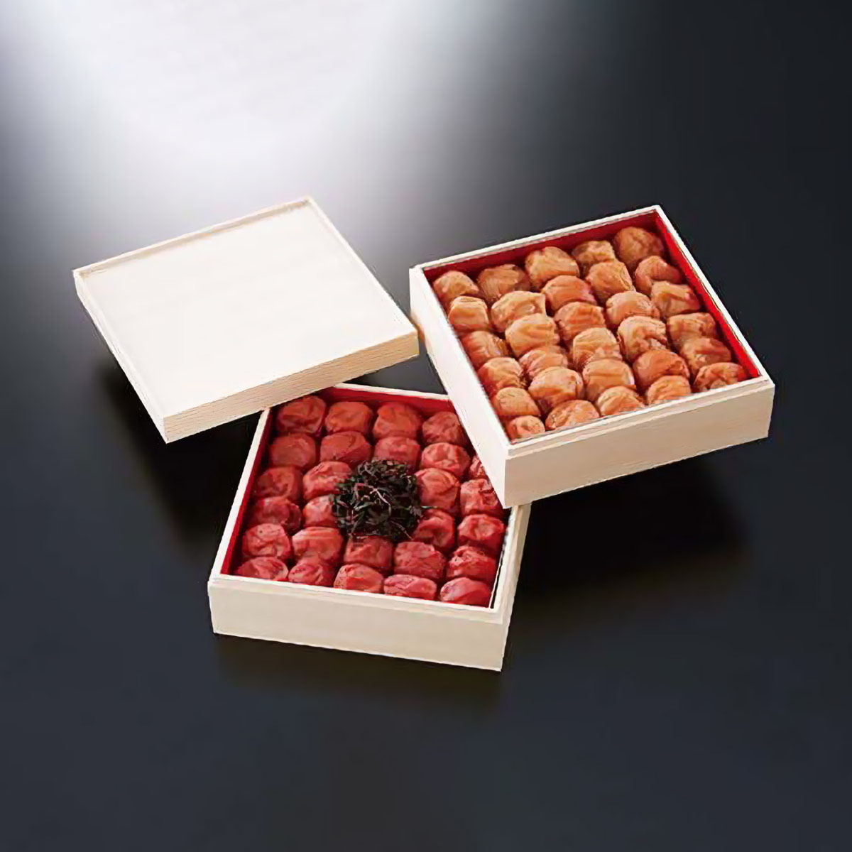 紀州産南高梅のうす塩味梅干としそ漬け梅干の、2種類の味わいがお楽しみいただける紅白梅干です。塩分約10%で仕上げました。