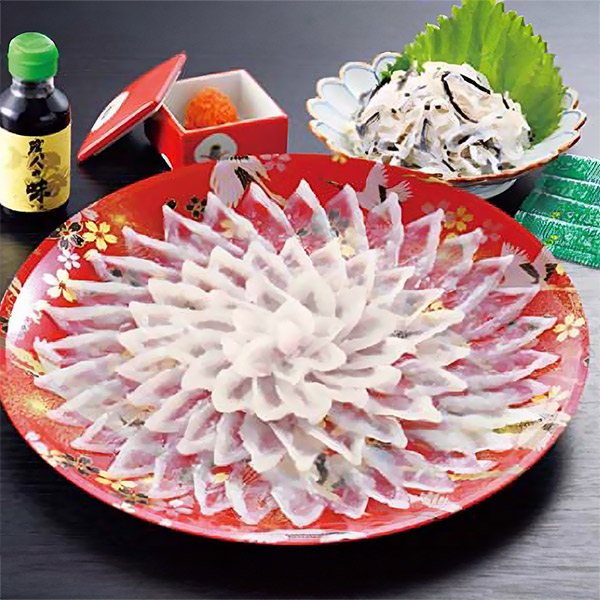 ●内容:とらふぐ刺身プラスティック皿盛り(直径30cm)135g、とらふぐ皮60g、ふくポン酢・もみじおろし、かぼす果汁付 (とらふぐ:国産・養殖) 【約4人前】●箱サイズ:33.6×33.6×10.3cm●商品に含まれるアレルギー特定原材料8品目:小麦●アルコール使用:なし●賞味期限:冷凍90日※お皿の柄が変更になる場合がございます。 ※お届け日、お届け時間のご指定は承れません。※ご注文からお届けまで10日前後いただいております。>>全国うまいもの巡り 商品一覧