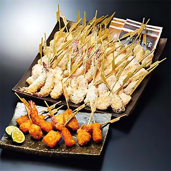 ●内容:串揚げ:6種×6、5種×4、5種×2 計66、タレ3種付●商品に含まれるアレルギー特定原材料8品目:小麦、卵、乳成分、えび●アルコール使用:なし●賞味期限:冷凍90日※お届け日、お届け時間のご指定は承れません。※ご注文からお届けまで10日前後いただいております。>>全国うまいもの巡り 商品一覧