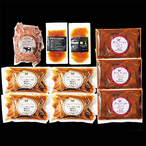 ●内容:黒毛和牛ローストビーフ300g(ロース肉)、熟成ローストビーフソース60g、玉ねぎわさびソース50g、牛たんシチュー220g×3、黒毛和牛入煮込みハンバーグ(固形量90g×2・ソース100g計280g)×4●箱サイズ:20.5×23.0×14.5cm●商品に含まれるアレルギー特定原材料8品目:卵、乳成分、小麦●アルコール使用:あり●賞味期限:冷凍60日※お届け日、お届け時間のご指定は承れません。※ご注文からお届けまで10日前後いただいております。>>全国うまいもの巡り 商品一覧