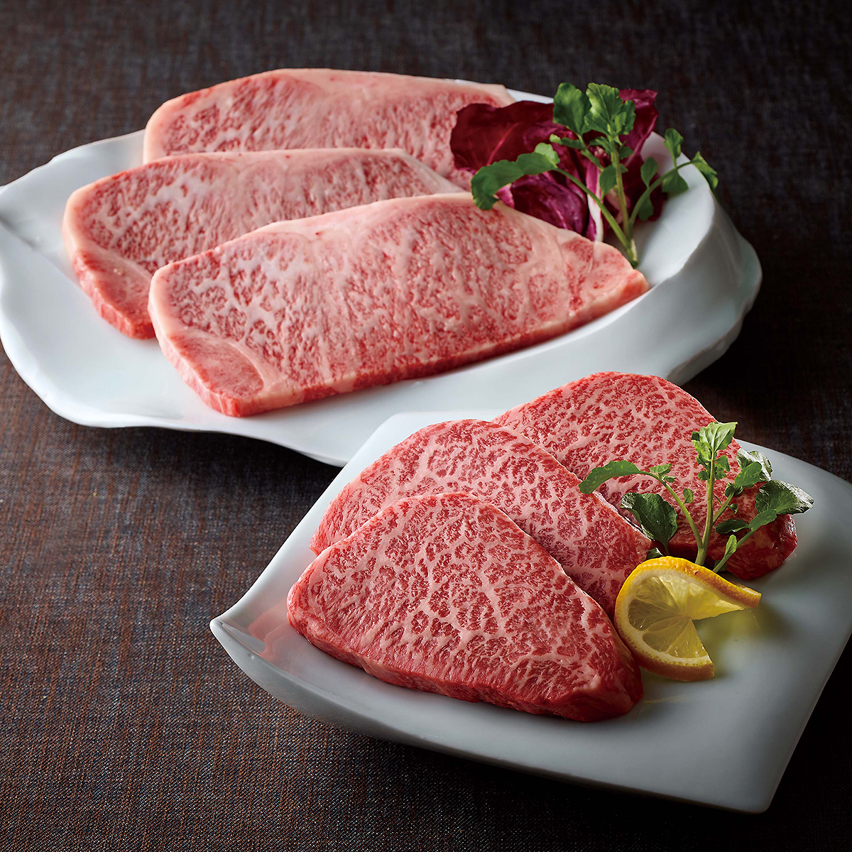 日本三大和牛のひとつ、松阪牛の美しい霜降りのサーロインと、あっさりとした赤身のモモ肉をステーキ用にカットしてお届けします。松阪牛の上質な旨味と芳醇な香りを存分にご堪能いただけます。※画像はイメージです。