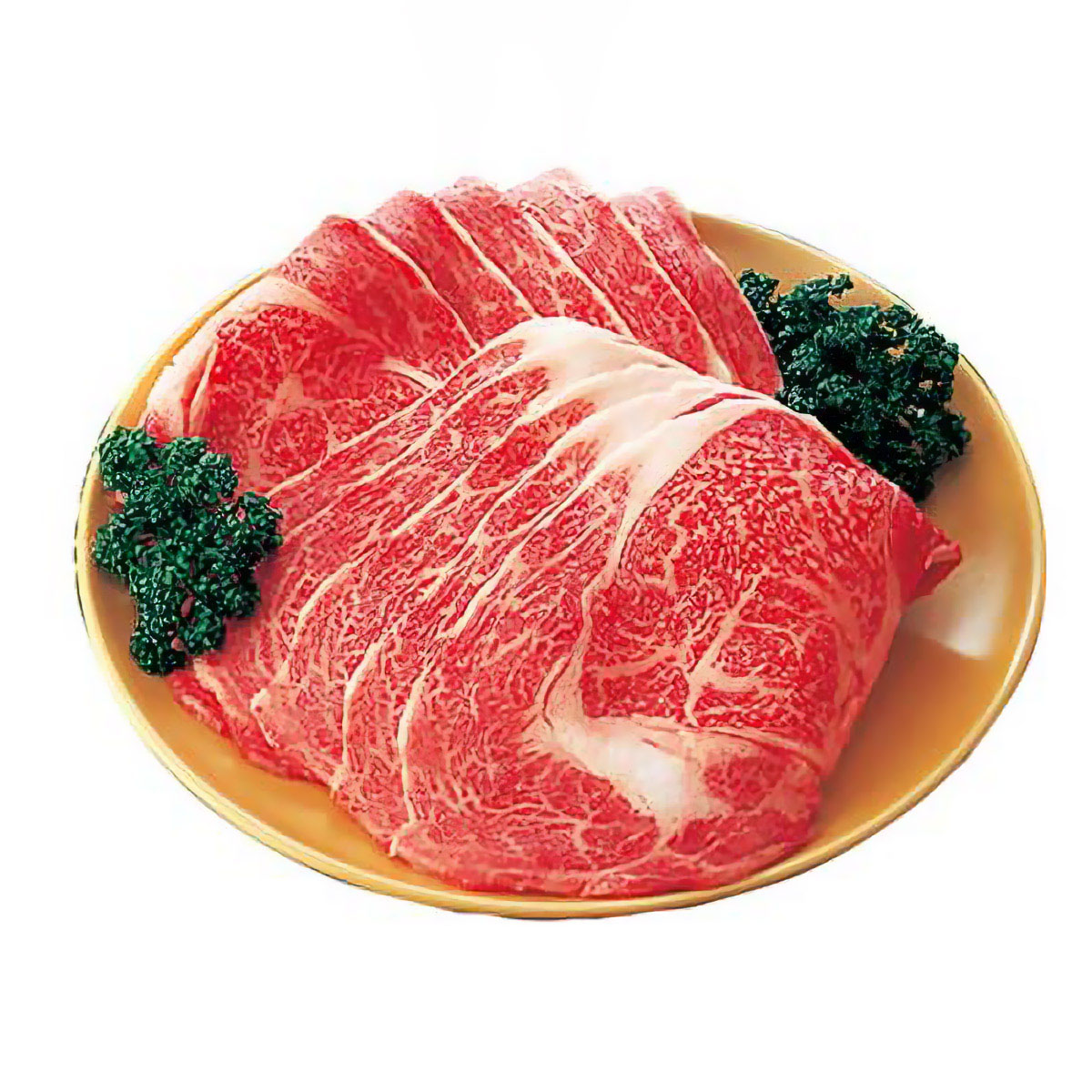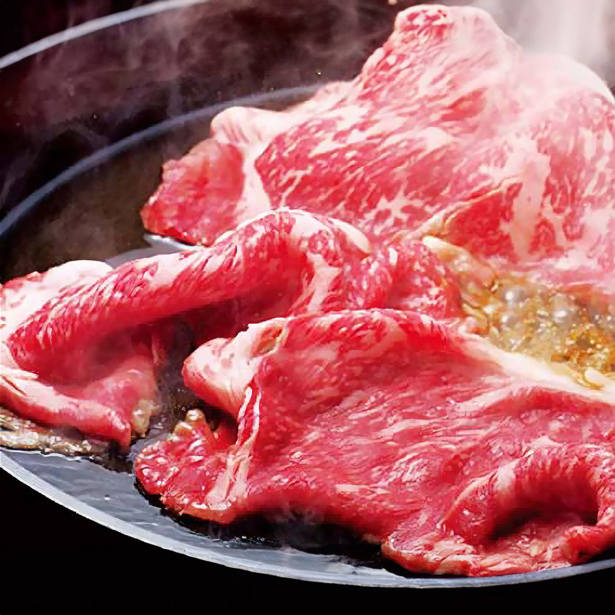 その見事な霜降りから、肉の芸術品とも称される「松阪牛」。脂肪と赤身のバランスが優れた、豊潤な旨味のロース肉をすき焼でお楽しみください。