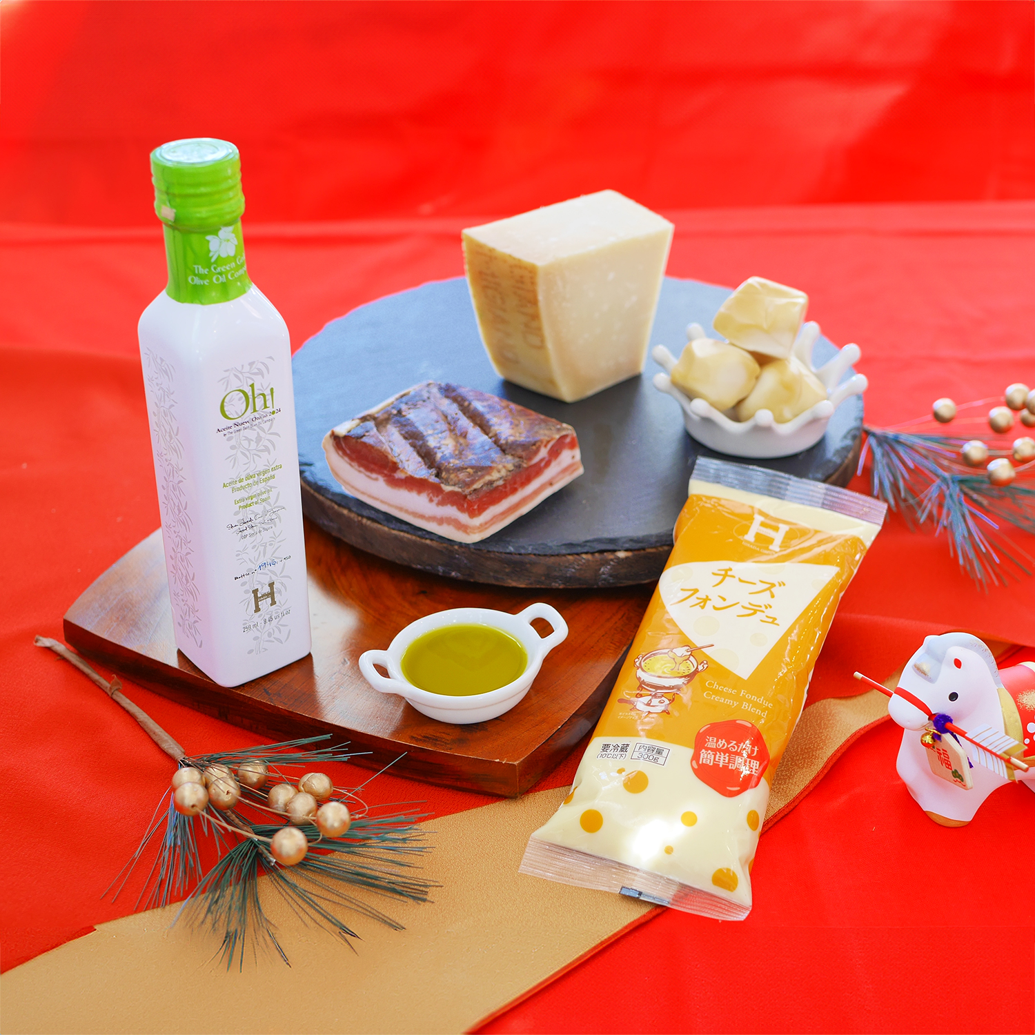 ●内容:ジョルジオパルミジャーノレジャーノD.O.P.24-28ヶ月(300g)、スピッチコアフミカート(100g)、チーズフォンデュ(300g)、アセイテヌエヴォオトーニョ2024(250ml)、バッハシュペック(200g)