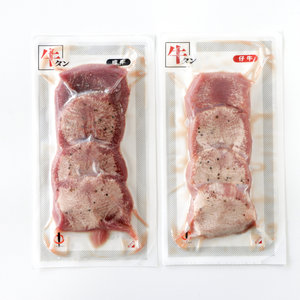 ◎ネット限定品「陣中の牛タンは162時間の二段階熟成」。牛タンを柔らかく仕上げ素材本来の濃厚な旨味を引き出しました。希少な仔牛と厳選した成牛、2種類の牛タンの味わいと食感の違いをお楽しみいただけます。