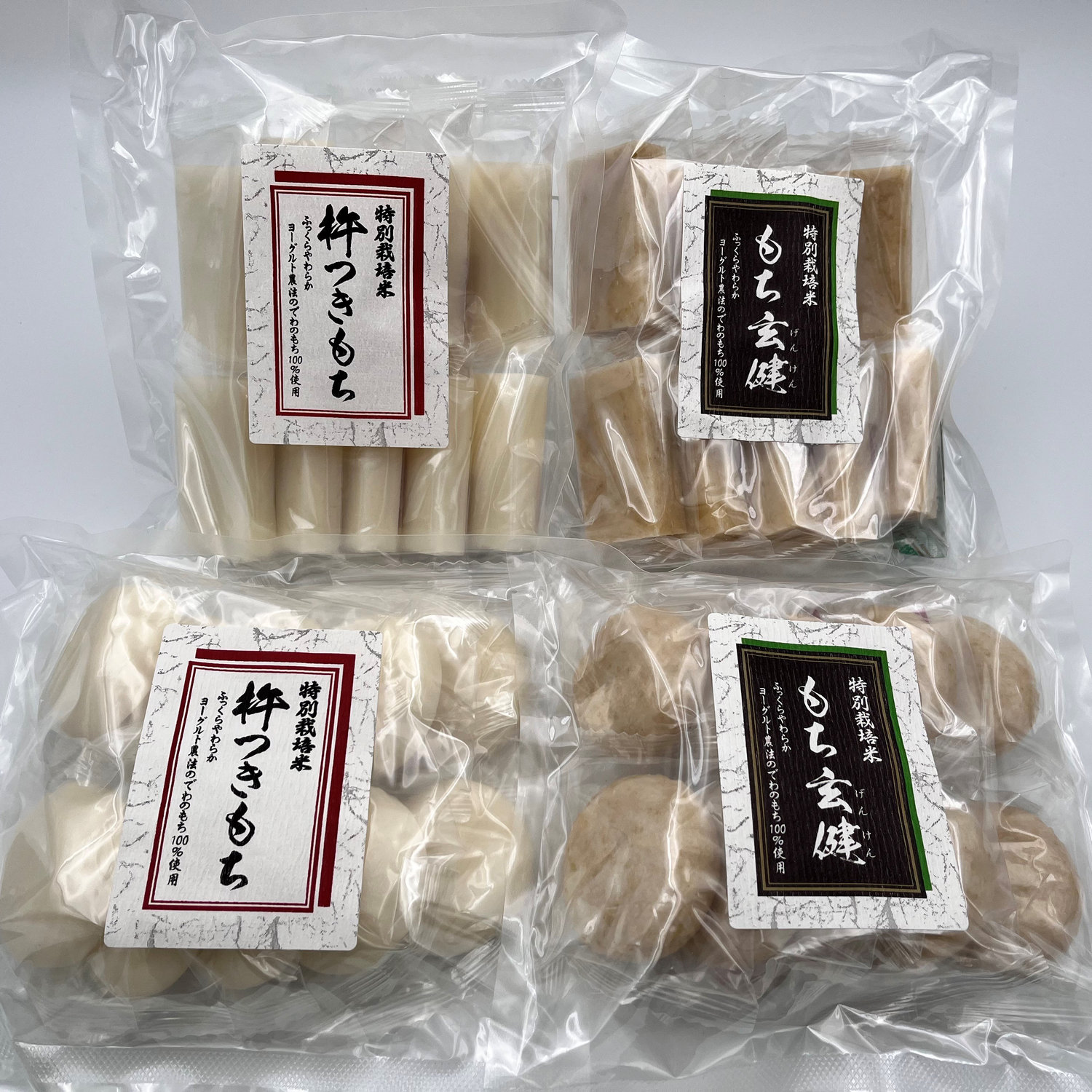 ●内容:白切餅(450g・10個入り)、白丸餅(450g・10個入り)、玄米切餅(450g・10個入り)、玄米丸餅(450g・10個入り)
