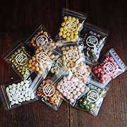 ●内容:柚子胡椒豆・トマトピー・ブラックペッパー豆・コンポタ豆(各40g)あおさ豆・マヨピー(各43g)梅干豆・煎黒大豆(各48g)ミルクアーモンド(58g)黒糖そら豆(60g)
