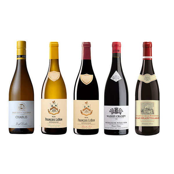 ブルゴーニュ産の白ワインを2本、赤ワインを3本詰め合わせたネット福袋限定セットです。優美で華やかなブルゴーニュワインを是非お楽しみください。