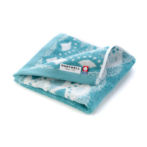 日本の伝統的な文様であり、縁起がいいとされる吉祥文様のなかでも、贈り物に最適な意味を持つ3柄をモダンに描いてギフトタオルに仕立てました。柄に変化を出すため、模様に一部にパイルの出ない『落とし』といわれる表現技法を採り入れて立体感を出しています。