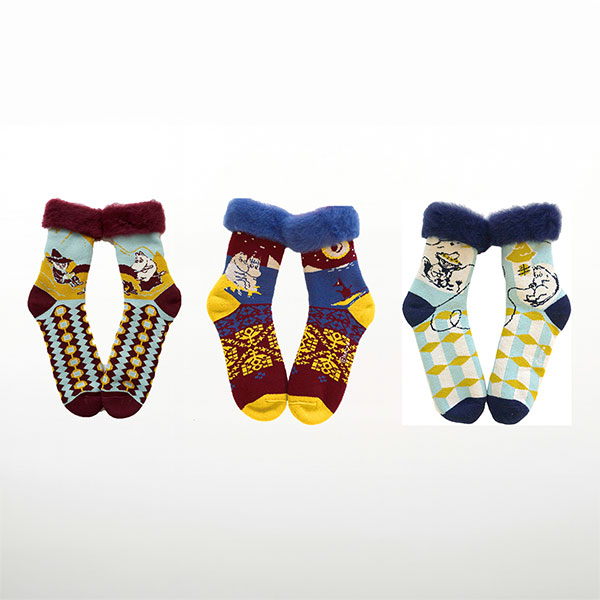 森と湖の国・北欧フィンランドで作られた「もこもこソックス」です。特別な機械を使い仕上げは職人が手作業で丁寧に起毛しているため、驚くほどふわふわで快適な履き心地です。北欧をモチーフにした遊び心のあるデザイン。そして天然の抗菌・消臭効果があるウール混も魅力的。温かなおうち時間やギフトに最適です。