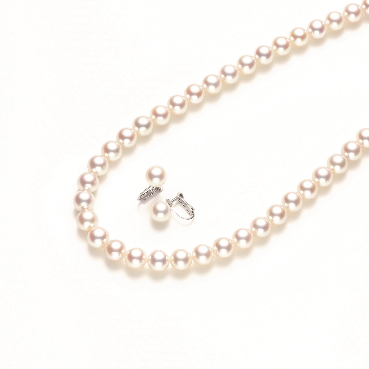 ●サイズ:ネックレス 8.0~8.5mm珠、イヤリング 8.0~8.5mm珠