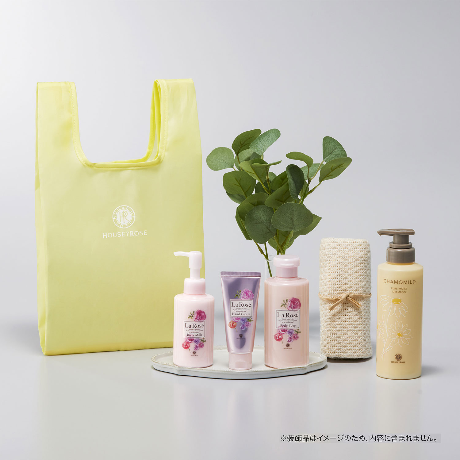 ●内容:シャンプー、ボディミルク、ボディソープ、ハンドクリーム、ボディタオル、エコバッグ