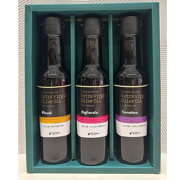 オーズファームの厳選したイタリア・スペイン産EXVオリーブオイルのセットです。味わいの異なる3種類のオリーブオイルは、使いやすいサイズ(100g)でサラダやパン、お肉料理など、様々なお料理に合います。味比べとしてもお楽しみ頂けます。