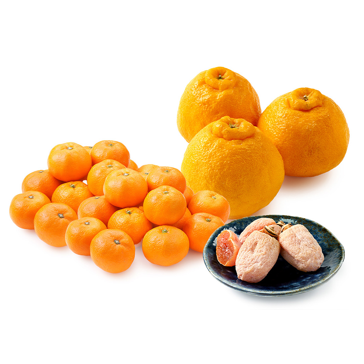年始の食卓を彩るのは、甘み豊かな柑橘と、和菓子のように上品な甘さを持つ干柿。冬の果物ならではの贅沢な組み合わせを詰め合わせました。温州みかん約2kgは、ご家族や来客時にも嬉しいボリューム感。さらに果汁たっぷりのデコポンを3玉加え、香り高く濃厚な甘さをプラスしました。そして仕上げには、市田柿約200g(1パック)。日本の冬を代表する干柿は、しっとりと柔らかく、自然の甘みが凝縮されています。柑橘のフレッシュな味わいと、干柿の奥行きある甘さを交互に楽しむことで、飽きの来ない組み合わせに仕上がりました。新春のお年賀や親戚への手土産にもふさわしい一品です。