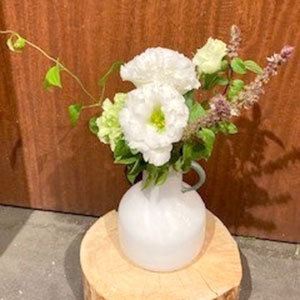 ◎ネット限定品ぽってりしたフォルムのかわいいハンプティベースに季節のミニブーケを添えて。これから先の春のお花と相性抜群のフラワーべースです。