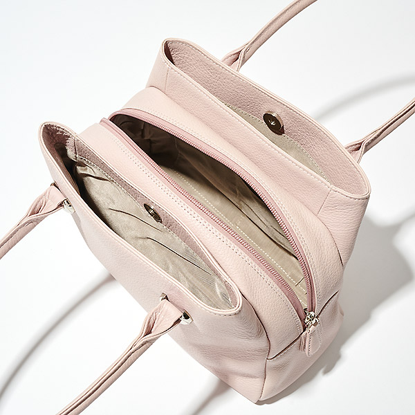 スモークピンク 縦20×横28×幅11cm 手紐高16cm 重さ680g