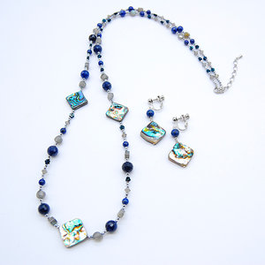 ●素材:[ネックレス]シェル、ラピスラズリ、ソーダライト、ヘマタイト、ラブラドライト、金具:合金、[イヤリング]シェル、ラピスラズリ、金具:合金ネジばね式