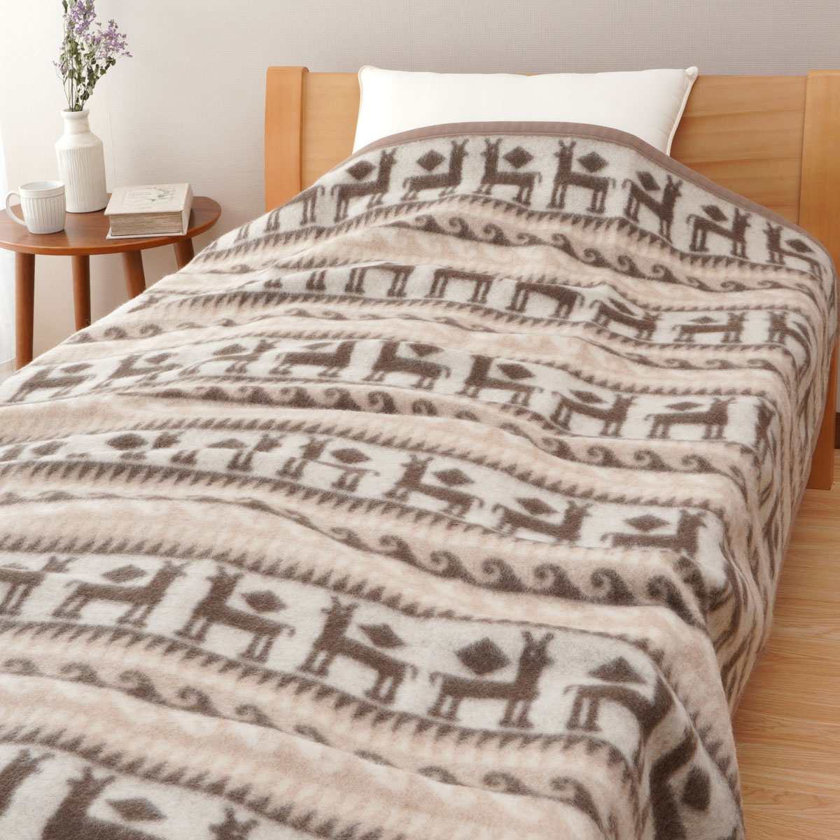 ◎ネット限定品日本のほとんどの毛布産地大阪泉大津市で生産。極めて良質なアルパカの毛を使用しています。毛質は固めで内側に空洞があり空気が溜まり保温性に優れています。軽量の為就寝時の体に負担がかかりにくいです。