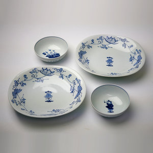 冬の福袋≪青花≫唐草異人 両切カレー皿&オランダ船 4寸ボール&パイプ異人 4寸ボール