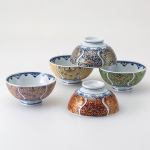 下絵の藍と色絵を施す錦手の手法。華やかさと豪華さが引き立つ伝統美が光るお茶碗です。