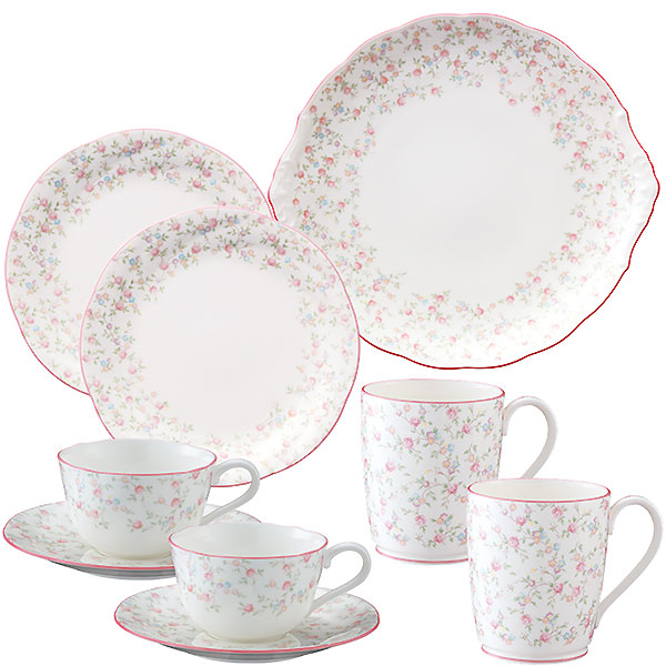 夢見るような甘いタッチの小花柄。甘さを抑えた上品なピンクのカラーが愛らしく、上品でフェミニンなデザインが魅力です。電子レンジにお使いいただけます。