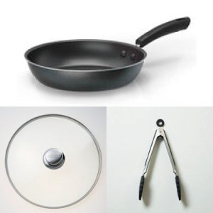 ●素材:[フライパン26cm]アルミニウム合金、ステンレス鋼、フェノール樹脂、ふっ素樹脂加工、[ガラス蓋26cm]強化ガラス、ステンレス鋼、[シリコーントング]シリコーンゴム、ステンレス鋼