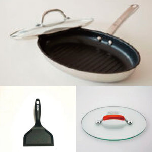 お肉だけでなく、アスパラガスもお魚も、細長い食材でも 美味しくグリル。グリルプレスも付いているので鶏肉も皮目がパリッとジューシーに焼きあがります。※ガス火、IH(電磁調理器)ともにお使いいただけます。