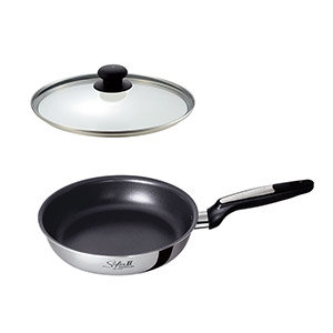 [ガラス蓋]中が見えて調理の様子が確認しやすい、フライパン用のガラス蓋です。定番ステンレス鍋のフタと統一感を持たせた使いやすいつまみと、フチ周りのあしらいでシックな印象に。