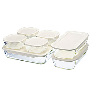 耐熱ガラス製の電子レンジ容器のセットです。電子レンジにお使いいただけます。フタを外してオーブンにもお使いいただけます。セット内容 角Sサイズ満水容量250ml 4コ 長角Mサイズ満水容量900ml 2コ 角特大サイズ満水容量2000ml 1コのセットです。