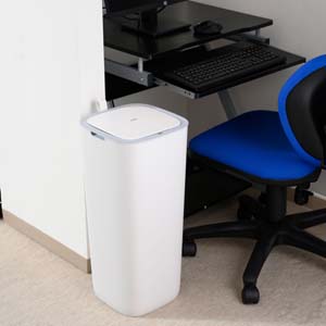 30Lの容量ながら縦型のスリムタイプなのでデスク脇や家具の隙間などにもフィット。 スマートセンサーにより手をかざせばフタが自動で開閉。EKO独自のスプリング&ヒンジシステムで驚くほど静かにスムーズに開閉する。本体はポリプロピレン(PP)製で軽く、30Lサイズでも重量はわずか2.3kg。持ち運びに便利なベルト付き。 マット加工で落ち着いた雰囲気に。フタ裏のシリコンシーリングで臭い漏れを極力抑え手を触れずに開閉でき衛生的。 スマートな見た目と30Lの容量で、家でもオフィスでもシーンを選ばずにお使いください。※単3乾電池×4本使用(別売り)