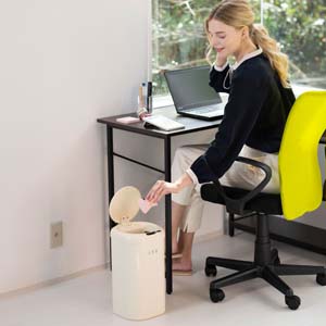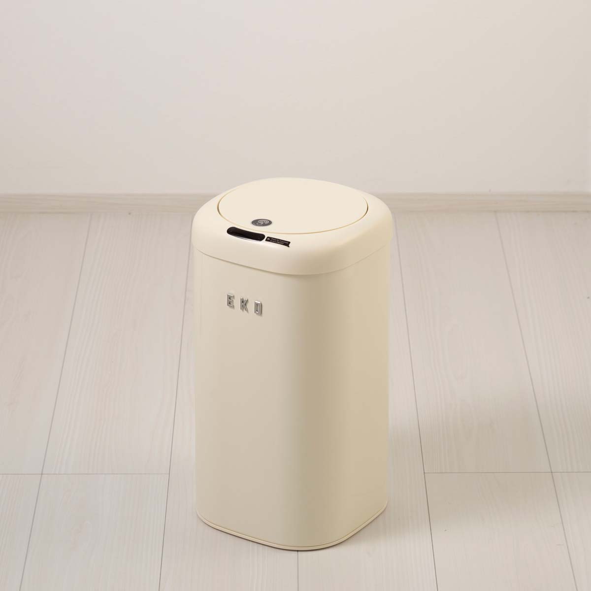バニラカラーのヴィンテージルックは現代のインテリアにもフィットする新しい提案。 最新のスマートセンサーで手などの動きを感知し自動で開閉、近くを通っただけではフタが開かない高精度センサーを使用。 EKO独自のスプリング&ヒンジシステムで驚くほど静かで滑らかな開閉を実現。 ゴミ袋は本体のリングにかけてセット、フタを被せれば外からゴミ袋が見えずスッキリしたデザインになります。お部屋、リビング、化粧室などにピッタリの省スペースサイズ。※単3乾電池×2本使用(別売り)