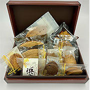 ●内容:菩提樹バウムクーヘンバラ×2、リーフパイ×1、浜栗×1、フルーツケーキ×1、カンパーニュ×1、ガレット×1、バニラクッキー×1、ショコラクッキー×1、ヘーゼルクッキー×1、ゴマクッキー×1、コーヒークッキー×1
