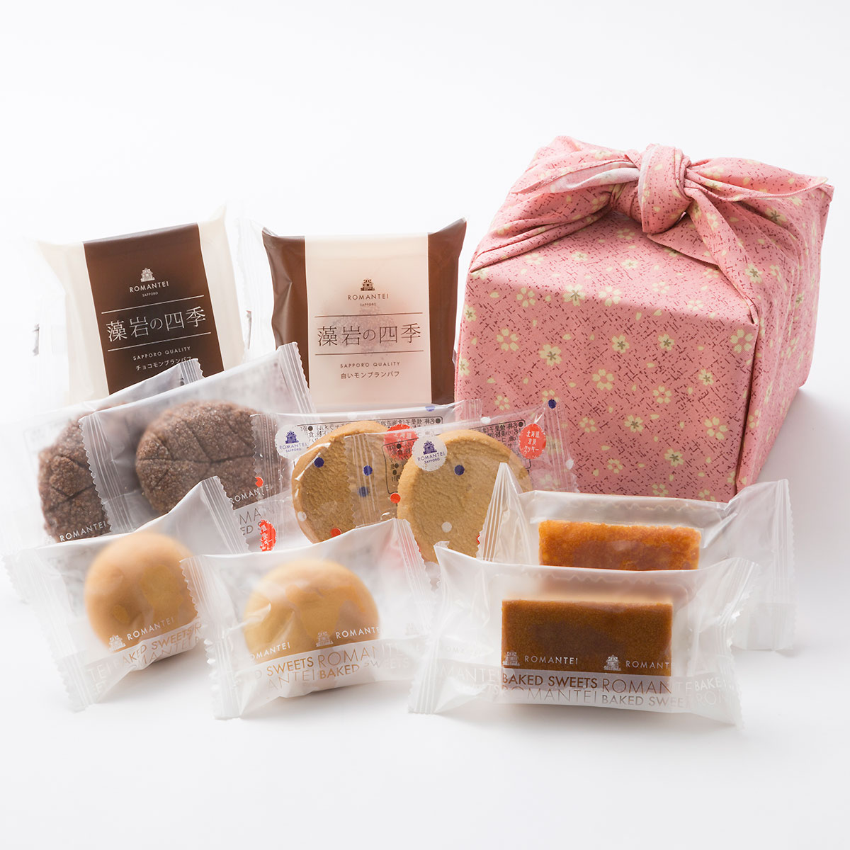 ●内容:藻岩の四季(チョコ)(ティラミス)×各1、藻岩の葉×2、北海道浪漫クッキー×2、札幌ろまん(オレンジケーキ)(クルミ黒糖)×各1、ほたるまんじゅう×2