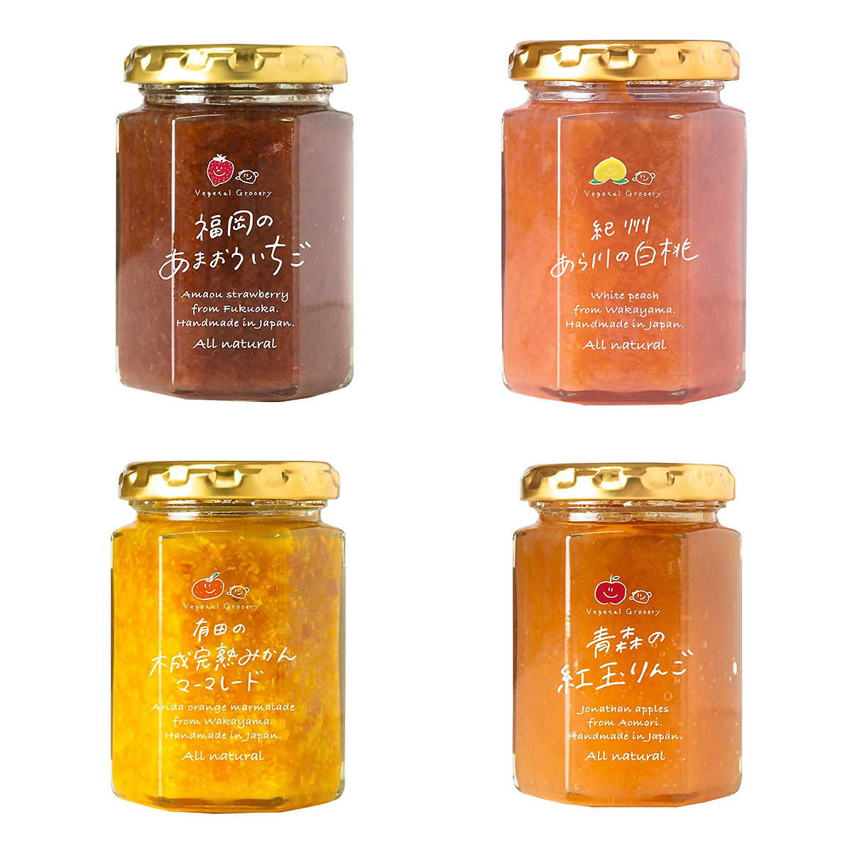 ◎渋谷スクランブルスクエア 東急フードショーエッジ取扱商品国産果実と低糖度にこだわった、果実感溢れる濃厚でフレッシュなクラシカルジャム。ジャム類としては最低糖度の40度に仕上げてあるので、パンやヨーグルトはもちろんドレッシングやソース類の風味付け、おやつ感覚でジャムだけお召し上がりもいただけるような果実そのままの味わいです。人気のあまおういちご、あら川の白桃、紅玉りんご、有田みかんマーマレードの4種類を詰合せにてお届けします。