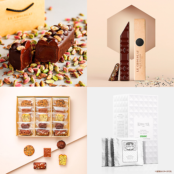 ●内容:ショコラバーノワール・セサミ×2箱、焼き菓子詰め合わせ×1箱、季節のケーク×1箱、クスミティーティーバック×1箱