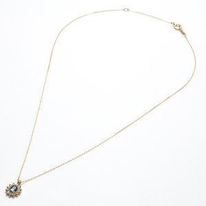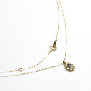 深く澄んだ青が魅力のロンドンブルートパーズを、ホワイトトパーズのやわらかな煌めきでぐるりと包み込んだペンダントネックレス。石のまわりにはK10ゴールドのミル打ちを施し、クラシカルな華やかさをプラス。繊細ながら存在感のあるデザインが、胸元に上品な彩りとリズムを添えてくれます。深みのあるブルーは、知性や落ち着きを感じさせるカラー。静かに輝くホワイトトパーズと重なり合うことで、凛とした存在感が生まれ、スタイル全体をすっと引き締めてくれます。特別な日にはもちろん、日常のささやかなシーンにも美しく寄り添ってくれるジュエリーです。
